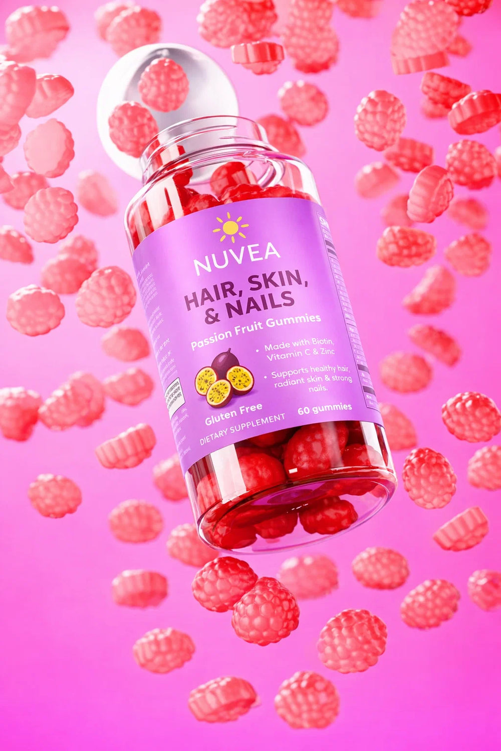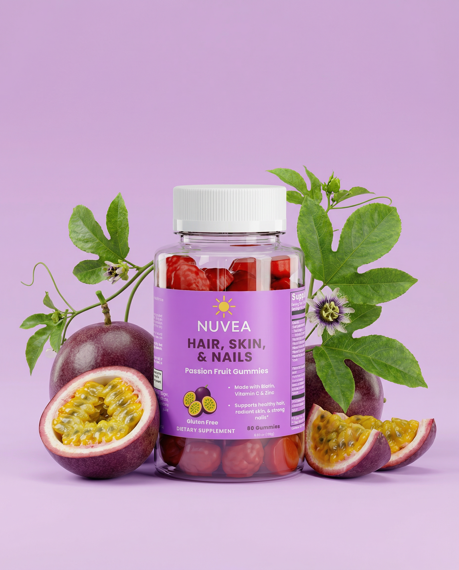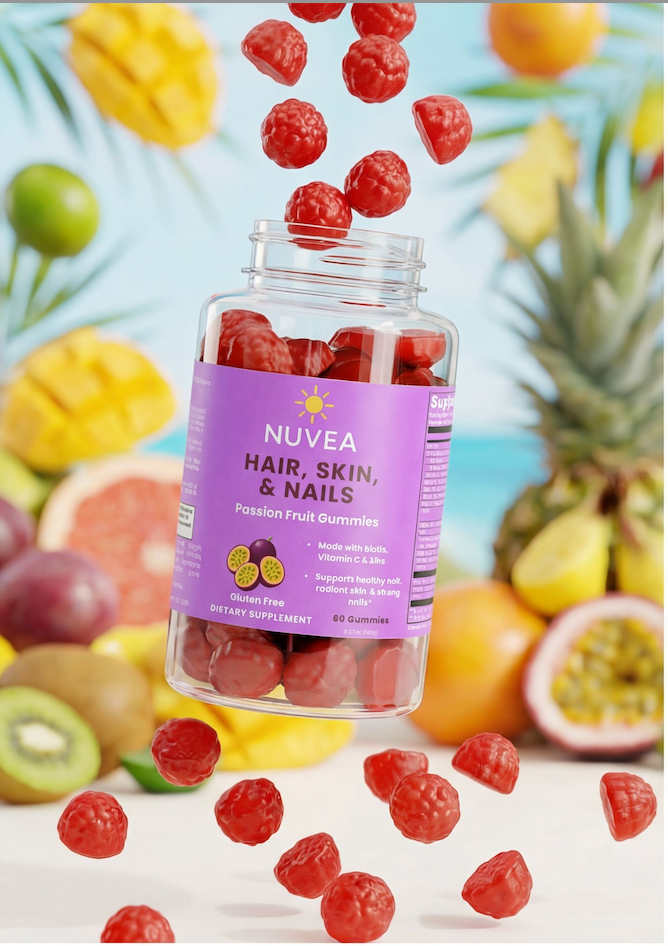 NUVEA delivers a comprehensive blend of biotin, collagen, and essential vitamins formulated to support healthier hair, glowing skin, and stronger nails.
